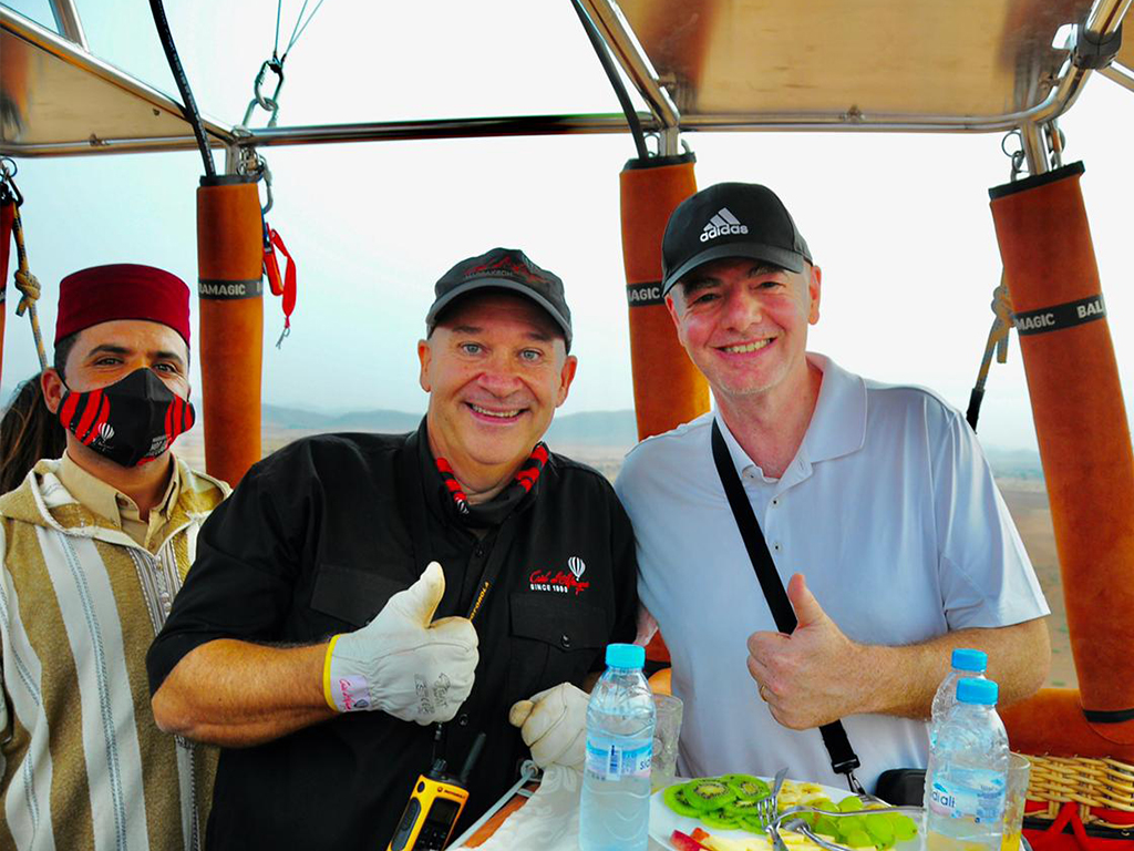 Depuis 1990, notre société Ciel d’Afrique est la référence en matière de vols en montgolfière à Marrakech. Nous vous promettons presque la lune, en vous proposant une activité de plain air d’exception et une expérience inoubliable à Marrakech : la découverte des paysages fabuleux du Maroc en Montgolfière. Nous vous garantissons, en fonction de la météo, une vue « imprenable » sur les plus beaux sites du pays (désert, villages et oasis berbères, montagnes et gorges encaissées …) et une sensation unique dans l’azur marocain. Le Maroc en montgolfière en formule découverte, VIP, Exclusive ou à la carte. Découvrez nos différentes prestations, et vivez avec nous le pur bonheur d’une expérience inédite en Montgolfière, en compagnie de nos pilotes chevronnés, et avec toutes les garanties de confort, de sécurité, et d’émerveillement.
