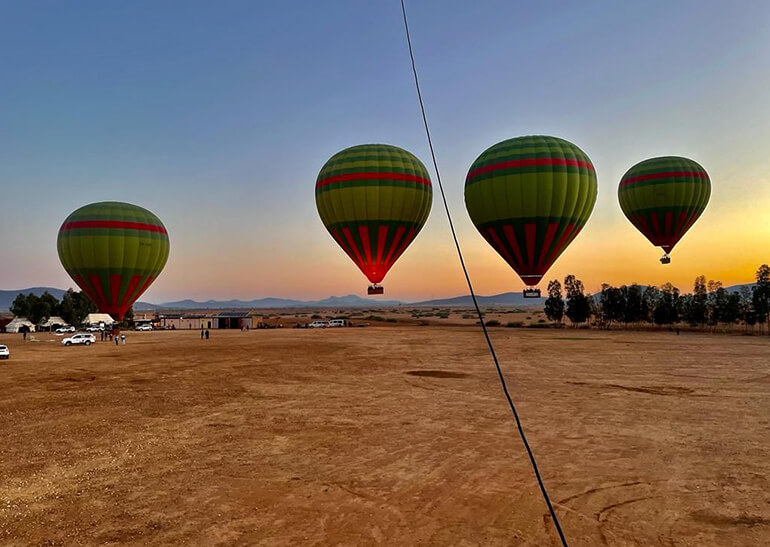 Depuis 1990, notre société Ciel d’Afrique est la référence en matière de vols en montgolfière à Marrakech. Nous vous promettons presque la lune, en vous proposant une activité de plain air d’exception et une expérience inoubliable à Marrakech : la découverte des paysages fabuleux du Maroc en Montgolfière. Nous vous garantissons, en fonction de la météo, une vue « imprenable » sur les plus beaux sites du pays (désert, villages et oasis berbères, montagnes et gorges encaissées …) et une sensation unique dans l’azur marocain. Le Maroc en montgolfière en formule découverte, VIP, Exclusive ou à la carte. Découvrez nos différentes prestations, et vivez avec nous le pur bonheur d’une expérience inédite en Montgolfière, en compagnie de nos pilotes chevronnés, et avec toutes les garanties de confort, de sécurité, et d’émerveillement.