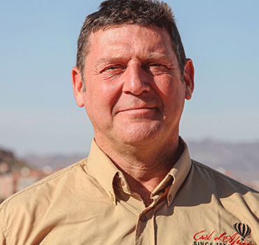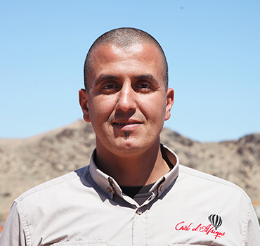 Abdelhouahed est en charge de l'ensemble de l'équipe au sol qui assiste les Montgolfières au décollage, assure la poursuite des vols en 4x4 et leur récupération, et responsable des prestations terrestres de la base de Ciel d'Afrique