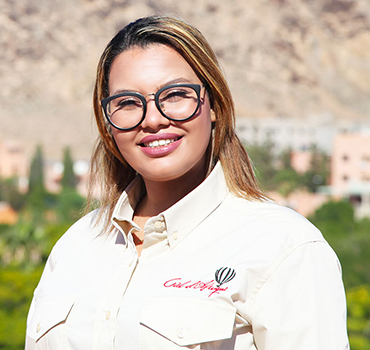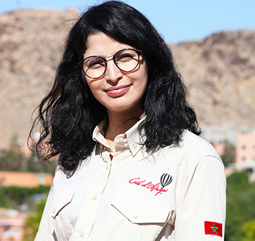 Nawal est l'ambassadrice de Ciel d'Afrique et représente nos prestations auprès des Hôtels, Riads, Villas et des Agences réceptives. C'est Nawal qui se charge aussi de diffuser nos brochures, d'expliquer les différents types de vols possibles et les tarifs.